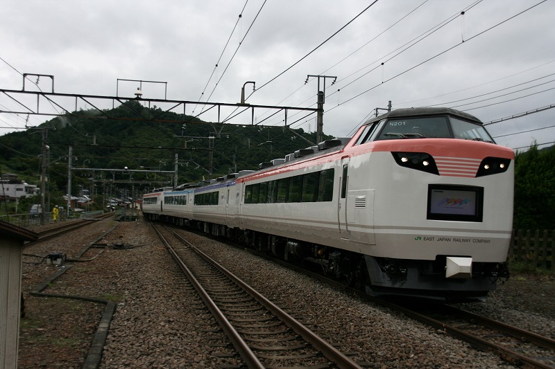 1時59分遂に寝台特急サンライズ出雲号が米原に到着した。2階のシングル個室に部屋が決まり、東京に向かう。 想像以上の豪華さで室内にはラジオが完備されていた。まるでホテルのようだ。シャワールームもあったが時間が遅かったので利用しなかった・・・ 変に目が冴えてしまい、名古屋あたり(3時ごろ)起きていた。 眠りから覚めると、根府川を過ぎたあたりであった。遅れていた列車は定刻通り東京駅に着く。同じ境遇の人々とはここで別れる。 荷物をロッカーに預け、中央線に乗る。一路山梨県へ!!今回の目的は子供泣かせ列車「いろどり」を撮りに行くためである。 高尾まで快速に乗り、高尾からは普通に乗る。山梨県と言っても山梨県の入り口あたりの大月市鳥沢に向かう。 鳥沢に着いた時には雨が降っていた・・・ 仕方なく雨の中、撮影を敢行する。降ったり止んだりの天気。ヤツが来るまで待ち続ける。その間フツーの列車を撮る。 そして11時15分やっとヤツがきた。 ↑485系いろどり 鋭い目付き。デカイディスプレイ。全くもって子供泣かせの列車である。 山梨に来た甲斐あり(洒落じゃないです・・・)。 今日の鉄撮りは一応終了。まあ写真を見てもらってもわかる通り天候が思わしくなかったので、観光に切り替える。観光といってももう行くところがありませんが・・・・ ホテルについて、今日の業務成果をチェック。そして早めの23時に就寝・・・ PR |